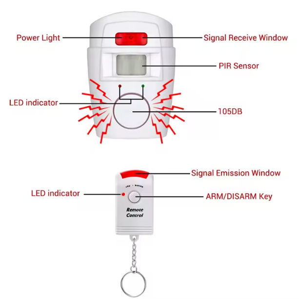 Osećajte se bezbedno i zaštićeno u svakom trenutku! Ovaj alarm sa senzorom pokreta detektuje svako neželjeno kretanje u prostoru i odmah se aktivira jakom sirenom od 105 dB, koja upozorava vas i odvraća potencijalne uljeze.
