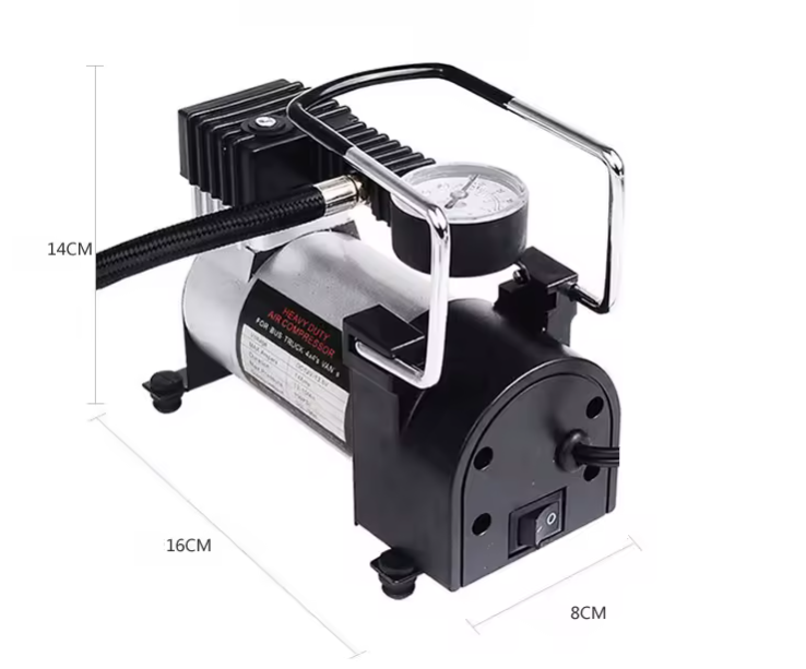Povezuje se direktno na akumulator ili upaljač u automobilu (12V) i omogućava brzo pumpanje guma na automobilima, biciklima, motorima, pa čak i lopti i dušecima.